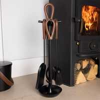 With its circular dust catcher base, iron frame and aluminum handles finished in real leather, the Fig Fireside Companion Set will set your fireside alight. With a natural fiber coco brush, poker, tongs and coal shovel this fireside piece of practicality gives a sophisticated and tasteful touch to any living room.Please Note:Warnings: This product will get hot if placed in front or close to an open fire.Please allow to cool, or use protective gloves before handling.Never leave children or pets unsupervised in a room with a lit fire or hot material.A blazing fire should never be left unattended.Features:Four piece fireside companion set with tool stand includedContrasting leather handlesCircular dust catcher baseBlack powder coated finishIncludes:1 x Coal Shovel1 x Tongs1 x Brush1 x Poker1 x Tool StandMaterials:IronAluminiumLeatherNatural Coco Fiber BrushDimensions:Overall: H63 x 16cm DiameterFire Poker: 7 x 1 x 50cmCoal Shovel: 11 x 4 x 50cmBrush: 11 x 4 x 50cmTongs: 9 x 6 x 50cmWeights:Total: 3.8kgTool Stand: 2.3kgFire Poker: 350gCoal Shovel: 400gBrush: 350gTongs: 450gColours:BlackAdditional Info.:Care Instructions: This product is best maintained by wiping occasionally with a soft cloth.Do not use any abrasive cleaners.For Indoor Use Only.