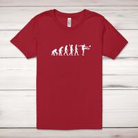 Evolution Of A Rugby Player Adult T-Shirt\nA novelty adult t-shirt with "Evolution Of A Rugby Player" printed across the front of a 100% cotton* t-shirt. This novelty t-shirt is great as a gift for any occasion.\nAll of our adult t-shirts are designed and hand-printed in the UK and are manufactured from quality 100% pre-shrunk jersey cotton knit for substantial softness and comfort. When quality, durability and substance count, this is the tee everyone can agree on. Featuring a crew neck, short sleeves, twin needle sleeve and bottom hems and unisex sizing. Available in sizes Extra Small to 5XL*.\n\n*Black & White tees available in sizes XS - 5XL, all other colours available XS - 2XL\n\nSize Guide\nUnisex adult t-shirts are measured around the chest, in inches\n\nXS 32/34"\nS 34/36"\nM 38/40"\nL 42/44"\nXL 46/48"\n2XL 50/52"\n3XL 54/56"\n4XL 58/60"5XL 62/64"\n\nSee more on our clothing size guide (opens in new tab)\n\n\nPlease Note\nAll of our t-shirts are hand-printed to order, as a result, colours may vary between prints - images are for illustration purposes only.\n\n