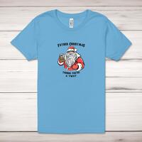 Father Christmas Thinks You're A ... Swearing Adult T-Shirt\nA rude unisex adult t-shirt with "Father Christmas thinks you're a ... " choose from cunt, twat or dick printed across the front of a 100% cotton* t-shirt. This rude t-shirt is great as a gift for any occasion.\nIf you'd like another swear word not listed above, let us know in your order notes.\nAll of our adult t-shirts are designed and hand-printed in the UK and are manufactured from quality 100% pre-shrunk jersey cotton knit for substantial softness and comfort. When quality, durability and substance count, this is the tee everyone can agree on. Featuring a crew neck, short sleeves, twin needle sleeve and bottom hems and unisex sizing. Available in sizes Extra Small to 5XL*. *Black & White tees available in sizes XS - 5XL, all other colours available XS - 2XL \n\nSize Guide\nUnisex adult t-shirts are measured across the chest, in inches\n\nXS 30/32"\n S 34/36"\nM 38/40"\nL 42/44"\nXL 46/48"\n2XL 50/52"\n3XL 54/56"\n4XL 58/60"5XL 62/64"\n\n\nSee more on our clothing size guide (opens in new tab)\n\n\nPlease Note\nAll of our adult t-shirts are hand-printed to order, as a result, colours may vary between prints - images are for illustration purposes only.\n