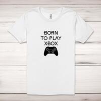 Born to Play Xbox Adult T-Shirt\nA novelty adult t-shirt with "Born to Play Xbox" printed across the front of a 100% cotton* t-shirt. This novelty t-shirt is great as a gift for any occasion.\nAll of our adult t-shirts are designed and hand-printed in the UK and are manufactured from quality 100% pre-shrunk jersey cotton knit for substantial softness and comfort. When quality, durability and substance count, this is the tee everyone can agree on. Featuring a crew neck, short sleeves, twin needle sleeve and bottom hems and unisex sizing. Available in sizes Extra Small to 5XL*.\n\n*Black & White tees available in sizes XS - 5XL, all other colours available XS - 2XL\n\nSize Guide\nUnisex adult t-shirts are measured around the chest, in inches\n\nXS 32/34"\nS 34/36"\nM 38/40"\nL 42/44"\nXL 46/48"\n2XL 50/52"\n3XL 54/56"\n4XL 58/60"5XL 62/64"\n\nSee more on our clothing size guide (opens in new tab)\n\n\nPlease Note\nAll of our t-shirts are hand-printed to order, as a result, colours may vary between prints - images are for illustration purposes only.\n\n