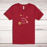I Fucking Hate People Adult T-Shirt\nA rude adult t-shirt with "I Fucking Hate People" printed across the front of a 100% cotton* t-shirt. This rude t-shirt is great as a gift for any occasion.\nAll of our adult t-shirts are designed and hand-printed in the UK and are manufactured from quality 100% pre-shrunk jersey cotton knit for substantial softness and comfort. When quality, durability and substance count, this is the tee everyone can agree on. Featuring a crew neck, short sleeves, twin needle sleeve and bottom hems and unisex sizing. Available in sizes Extra Small to 5XL*.\n\n*Black & White tees available in sizes XS - 5XL, all other colours available XS - 2XL\n\nSize Guide\nUnisex adult t-shirts are measured around the chest, in inches\n\nXS 32/34"\nS 34/36"\nM 38/40"\nL 42/44"\nXL 46/48"\n2XL 50/52"\n3XL 54/56"\n4XL 58/60"5XL 62/64"\n\nSee more on our clothing size guide (opens in new tab)\n\n\nPlease Note\nAll of our t-shirts are hand-printed to order, as a result, colours may vary between prints - images are for illustration purposes only.\n\n