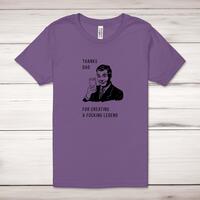 Thanks Dad Adult T-Shirt\nA rude adult t-shirt with "Thanks Dad For Creating A Fucking Legend" printed across the front of a 100% cotton* t-shirt. This rude t-shirt is great as a gift for any occasion.\nAll of our adult t-shirts are designed and hand-printed in the UK and are manufactured from quality 100% pre-shrunk jersey cotton knit for substantial softness and comfort. When quality, durability and substance count, this is the tee everyone can agree on. Featuring a crew neck, short sleeves, twin needle sleeve and bottom hems and unisex sizing. Available in sizes Extra Small to 5XL*.\n\n*Black & White tees available in sizes XS - 5XL, all other colours available XS - 2XL\n\nSize Guide\nUnisex adult t-shirts are measured around the chest, in inches\n\nXS 32/34"\nS 34/36"\nM 38/40"\nL 42/44"\nXL 46/48"\n2XL 50/52"\n3XL 54/56"\n4XL 58/60"5XL 62/64"\n\nSee more on our clothing size guide (opens in new tab)\n\n\nPlease Note\nAll of our t-shirts are hand-printed to order, as a result, colours may vary between prints - images are for illustration purposes only.\n\n