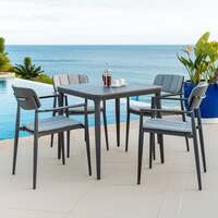 From the same amazing collection of modern outdoor furniture, the Alexander Rose Rimini 4 Seater Square Table Dining Set is fantastic for entertaining family or friends. The Rimini Collection by Alexander Rose is famous for two things. The sleek and contemporary designs of the products in this collection stand out right away and give your outdoor living space a relaxed, stylish feel. Second, the garden furniture in this collection is strong and resilient even in the worst weather situations. The items are made of recycled powder-coated aluminium that has a matte grey finish and a textured surface . The Alexander Rose Rimini Stacking Armchair is beautifully styled with comfortable armrests and can be perfectly stored when not in use. It is designed to be totally practical as well as refreshingly comfortable. The Alexander Rose Rimini Square Table has a simple yet modern design. It has a contemporary powder-coated aluminium frame with a ceramic effect, glass table top . Each item has a thick yet sturdy aluminium frame that has been expertly welded with a lovely powder coated finish in grey to protect against all types of weather. Specifications Recommended Footprint: 200cm x 200cm Table Dimensions: 74cm (H) x 75cm (W) x 75cm (D) Table Weight (kg): 13.5 Chair(s) Dimensions: 80cm (H) x 565.cm (W) x 56cm (D) Chair(s) Weight (kg): 4