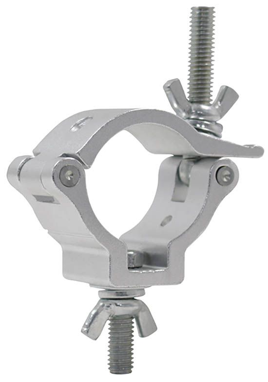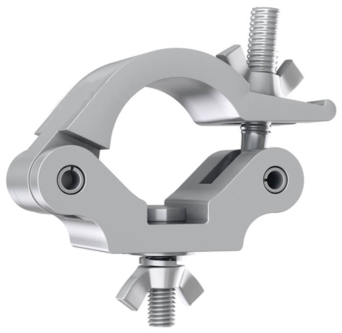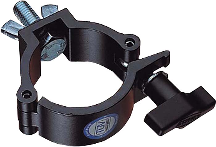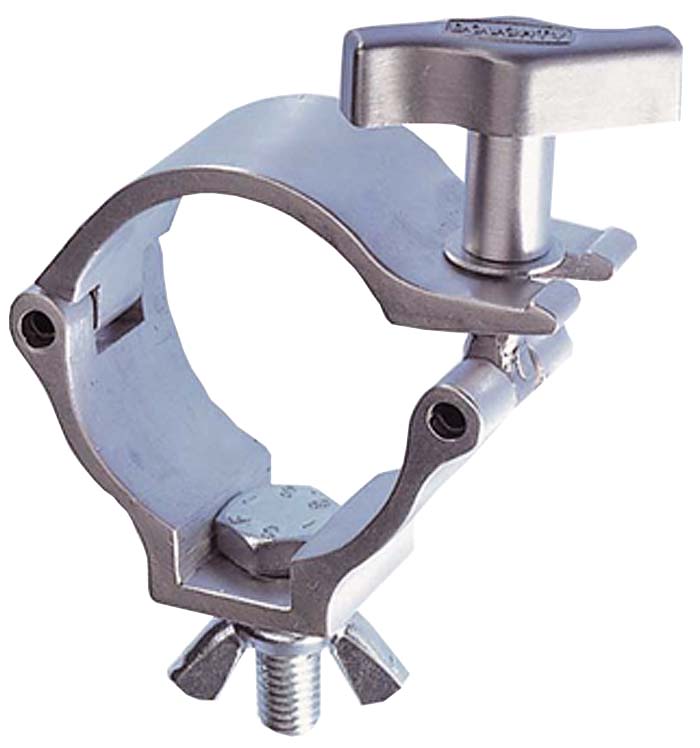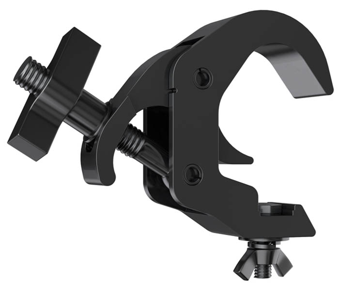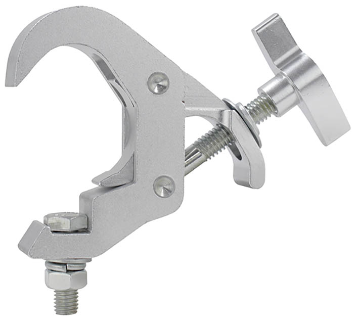High Tensile Aluminium. Various Sizes. Wing Nut & Bolt Fixing. Black Or Silver FinishSWL: 100 kg (all sizes) Widths and fixing: T58887: 21mm M6 fixing T58830: 30mm M6 fixing T58997: 30mm M10 fixing. The Atom Hook Clamp Couplers are supplied with a Wing Nut and Bolt Fixing. (Not Shown on the silver picture). Manufactured from high tensile aluminium extrusion. The clamps are available in sizes to fit 25-32 & 38mm diameter tubes.. Doughty Atom hook clamp in a range of sizes and colours and supplied with wing nut and bolt fixing. Manufactured in high tensile aluminium to fit 25-32 & 38mm diameter tubes.. clamp-doughty hook clamp-truss hook clamp-coupler clamp