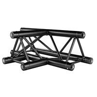 3 Way Horizontal T. Strong Aluminium Truss. 50mm Tube. Complete With Couplers. Available in Aluminium or Black FinishTriangle Size: 290 x 290 x 290mm Tube Size: 50mm Weight: 7.2Kg. A Trio truss 290 3way T Corner. Crafted from high-quality 50mm aluminium alloy (EN AW 6082 T6)- this triangular truss is built to withstand even the most demanding applications. Its conical connectors and pins make setup quick and easy- ensuring a safe and stable installation every time. But that's not all - the Trio truss also boasts ISO DIN 4113 and TšV certifications- guaranteeing that it meets the highest safety standards. You can trust that this truss system will keep your performers- audience- and equipment secure throughout your event. Whether you're organizing a stage production- exhibition- or school event- the Trio truss is the perfect solution. It's even great for rental companies and shop displays! Plus- with the choice of black or ali finish- you can customize the look to fit your specific needs. Upgrade your production or event with the versatile and durable Trio truss system. Don't settle for less - choose Trio truss for a safe- reliable- and professional experience.. truss-trussing-trussing corner-triangle truss