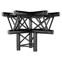 4 Way Cross + 1 Down. Strong Aluminium Truss. 50mm Tube. Complete With 3 Connection Kits. Available in Aluminium or Black FinishTriangle Size: 290 x 290 x 290mm Tube Size: 50mm Weight: 10.95Kg. A Trio truss 290 4 way cross and one down section. Crafted from high-quality 50mm aluminium alloy (EN AW 6082 T6)- this triangular truss is built to withstand even the most demanding applications. Its conical connectors and pins make setup quick and easy- ensuring a safe and stable installation every time. But that's not all - the Trio truss also boasts ISO DIN 4113 and TšV certifications- guaranteeing that it meets the highest safety standards. You can trust that this truss system will keep your performers- audience- and equipment secure throughout your event. Whether you're organizing a stage production- exhibition- or school event- the Trio truss is the perfect solution. It's even great for rental companies and shop displays! Plus- with the choice of black or ali finish- you can customize the look to fit your specific needs. Upgrade your production or event with the versatile and durable Trio truss system. Don't settle for less - choose Trio truss for a safe- reliable- and professional experience.. truss-trussing-trussing corner-triangle truss