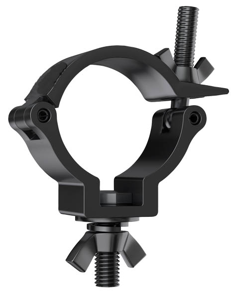 Swivel Coupler. 360 Degrees of Movement. High Tensile Aluminium. 35mm Half Couplers. Black or Silver FinishSWL: 100Kg. The Atom Swivel Coupler provides a firm fixing between adjacent bars whilst allowing 360 degrees of movement. Manufactured from high tensile Aluminium Extrusion.. Doughty Atom 35mm swivel half coupler in a range of colours offering 360 degrees of movement. Manufactured in high tensile aluminium. clamp-doughty clamp-half coupler-truss clamp-lighting clamp-swivel clamp