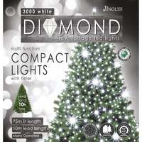 Put on a bigger light show in the garden or create a more impressive Christmas tree with these White LED Multi-Function Christmas Compact Lights by The Christmas Centre, which give a stunningly classic white glow. With up to 3000 LED bulbs spaced 2.5cm apart , these lovely compact LED lights are great for perfectly adorning 6ft - 10ft Christmas trees. A lengthy lead cable gives you the ability to plug the lights into your closest mains outlet without stretching or having dangerously tight wires. These Christmas lights in bright white would look great with any Christmas décor. The LED Christmas lights have 8 lighting modes for you to choose from to create the perfect atmosphere, and once they are positioned, the convenient timer will let these pretty lights shine for 8 hours every day at the same time, while an inventive memory function will enable to set your preferred setting as well as the time you want the lights to turn back on - even when they have been turned off. Features 750, 1500, 2000, 3000 White LED lights (see drop-down menu) 8 lighting options 8 hour timer (16 hours off) and memory function Can be used indoors and outdoors Mains operated (has a BS IP44 adaptor) 360° visible light Suitable for 6ft (750 LEDs), 8ft (1500 LEDs), 9ft (2000 LEDs), and 10ft trees (3000 LEDs) Specifications Brand: The Christmas Centre Type: Multi-Function Christmas Lights Bulb Type: LED Lead Length: 28.75m (750 LEDs), 47.5m (1500 LEDs) Length from Plug to First Bulb: 10m Bulb Spacin 2.5cm IP Ratin IP44 Light Options: Combination, In Wave, Sequential, Slow Glow, Chasing/Flash, Slow Fade, Twinkle/Flash, Steady On . White LED Multi-Function Christmas Compact Lights - 750, 1500, 2000, 3000, 3000 LEDs