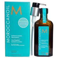 Moroccanoil Treatment Hair Oil 125ml is the essential foundation for all hair types. A versatile styler that can be used for conditioning, styling and finishing. Fast-absorbing, antioxidant argan oil-infused formula transforms hair to become shiny, smooth and manageable.\n\nRestores and revives hair damaged by chemical and environmental factors\nArgan oil-infused\nSuitable for all hair types\nHair has improved manageability & shine\nFor use on wet or dry hair\n\nDirections for Use Moroccanoil Treatment:\nWet Hair: Apply to damp hair from mid-length to ends as the foundation for all styling and to prepare the hair for blow-drying. Blow-dry or style as usual. Dry Hair: Apply to dry hair from mid-length to ends, to help smooth and eliminate frizz and help protect against environmental factors, including the sun and wind. Provides long-lasting shine while taming fly-aways.\nYou may see these other items:\nMoroccanoil Moisture Repair Shampoo 250ml\nMoroccanoil Moisture Repair Conditioner 250ml\nMoroccanoil Treatment Original 100ml\nMoroccanoil Treatment Light 25ml\nMoroccanoil Intense Hydrating Mask – 250ml\n