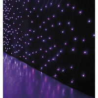 Size Indicated is Width x Height. Black Molton Cloth. RGB LEDs. Controller Included. Selectable DMX Channels. Auto- Sound and Master/Slave Modes. Hook & Loop Eyelets. 2 Sizes AvailablePower Supply: 100-240Vac- 50/60Hz Power Consumption: 100W LED: 128 x RGB DMX Channels: 5 or 12 Controller Dimensions: 180 x 50 x 150mm Controller Weight: 1.2Kg Fabric Weight: 12.5Kg (6 x 3m) or 14.5Kg (6 x 4m). The Star Dream is a black molton cloth with built-in LEDs (8 groups) and LED controller to create a starry sky. It is available in different sizes with RGB LEDs. The backdrop curtain is equipped with hook and loop and eyelets. The Star Dream has several operating modes such as Auto- Sound and Master/Slave. Control via DMX is also no problem with 3 pin XLR inputs & outputs. Available in 6 x 3m or 6 x 4m.. led star cloth-star cloth-star curtain