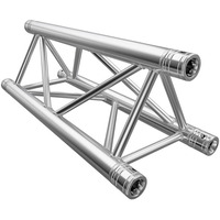 Strong Triangle Truss. 50mm Tube. Complete With Fixing Kit. Available in Various LengthsTriangle Size: 290 x 290 x 290mm Tube Size: 50mm Wall Thickness: 2mm. The Global Truss F33 is a trussing system known for its TUV certification- ensuring high-quality aluminium welding and a 2mm wall thickness. These features contribute to its impressive load handling capacity- making it suitable for a wide range of applications- including fixed installations- shop fittings- and rental setups. The F33 truss system offers a comprehensive selection of lengths (0.25m- 0.4m- 0.5m- 0.75m- 1m- 1.5m- 2m- 2.5m- 3m- 3.5m & 4m) baseplates- corners- connectors- and couplers. This extensive range of components allows for versatile and customizable configurations- accommodating various design requirements and structural needs. When it comes to assembly- the F33 truss system provides 3 conical connectors with pins and R clips with each piece. This design simplifies and expedites the assembly process- as the conical connectors ensure a secure connection between truss sections- while the pins and R clips add an extra layer of safety by preventing accidental disconnection. Overall- the Global Truss F33 is a reliable and durable trussing system.. Global F33 triangle truss for 50mm tubes- part of the Global Truss F33 trussing system widely used in stage and event production to create temporary structures for events. truss-trussing-trussing straight lengths-triangle truss-global truss