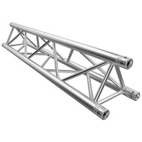 Strong Triangle Truss. 50mm Tube. Complete With Fixing Kit. Available in Various LengthsTriangle Size: 290 x 290 x 290mm Tube Size: 50mm Wall Thickness: 2mm. The Global Truss F33 is a trussing system known for its TUV certification- ensuring high-quality aluminium welding and a 2mm wall thickness. These features contribute to its impressive load handling capacity- making it suitable for a wide range of applications- including fixed installations- shop fittings- and rental setups. The F33 truss system offers a comprehensive selection of lengths (0.25m- 0.4m- 0.5m- 0.75m- 1m- 1.5m- 2m- 2.5m- 3m- 3.5m & 4m) baseplates- corners- connectors- and couplers. This extensive range of components allows for versatile and customizable configurations- accommodating various design requirements and structural needs. When it comes to assembly- the F33 truss system provides 3 conical connectors with pins and R clips with each piece. This design simplifies and expedites the assembly process- as the conical connectors ensure a secure connection between truss sections- while the pins and R clips add an extra layer of safety by preventing accidental disconnection. Overall- the Global Truss F33 is a reliable and durable trussing system.. Global F33 triangle truss for 50mm tubes- part of the Global Truss F33 trussing system widely used in stage and event production to create temporary structures for events. truss-trussing-trussing straight lengths-triangle truss-global truss