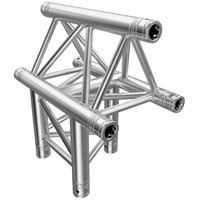 Global Truss F33 3 Way Vertical T. 50mm Tube. Supplied with 2 Fixing KitsTriangle Size: 290 x 290mm Tube Diameter: 50mm Wall Thickness: 2mm Weight: 8.4Kg. The F33 Standard Vertical T Piece Apex Out is a specific component designed for the Global Truss F33 trussing system. It is used to create a T-shaped junction in the truss structure- with the apex pointing outwards. When you purchase the F33 Standard Vertical T Piece Apex Out- it is supplied with six conicals- twelve pins- and twelve R-clips. The conicals are used to securely connect the F33 truss sections to the T piece- while the pins and R-clips ensure a stable and reliable connection- preventing accidental disassembly. The F33 Standard Vertical T Piece Apex Out is constructed with a 2mm wall thickness of aluminium- which provides strength and durability to support the load handling capacity of the trussing system. The truss diameter is 290mm- indicating the overall size of the truss structure- while the tube diameter is 50mm- referring to the individual tubes that make up the truss sections. By incorporating the F33 Standard Vertical T Piece Apex Out into your F33 trussing system- you can create branching sections and configure the truss structure according to your specific needs. The supplied conicals- pins- and R-clips ensure a secure and efficient assembly process. It's important to follow the manufacturer's instructions when using the F33 Standard Vertical T Piece Apex Out and associated components to ensure proper installation and secure attachment of the truss sections.. truss-trussing-trussing corner-triangle truss-global truss