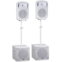 Active PA System. FBT J12A Tops & Subline 115SA Subs. 2 x 12" Tops & 2 x 15" Subs. Telescopic Poles & Covers Included. Available in Black or WhitePower: 2200W. Introducing the FBT J12A Active Speaker and the SUBline 115SA Subwoofer - a legendary duo honed over years to set an industry standard. This dynamic partnership has resulted in a harmonious fusion of sound- complete with covers and poles for your convenience. FBT J12A Active Speaker: The FBT J12A boasts a sleek- modern design that effortlessly blends into any setting- making it ideal for both permanent installations and live performances. Its asymmetrical shape also allows for use as a powered floor stage monitor. This two-way speaker combines a 12" low-frequency woofer and a 2" HF custom compression driver- creating a powerful sound profile. The active internal crossover is set at 2KHz for optimal performance. With a wide frequency range of 50Hz to 20KHz and a maximum SPL of 128dB- the J12A guarantees high-fidelity sound for both speech and music applications. Inside- it's powered by a bi-amplified system featuring a 250W RMS low-frequency amp and a 50W RMS high-frequency amp. The control panel is user-friendly and packed with features: a level control- HP filter switch- mic/line selector- preset switch for different sound profiles- LED power and protection/limiter indicators- and balanced XLR and Jack inputs and outputs. This speaker is designed for versatility- with two M10 fly points for rigging or optional mounting brackets for surface mounting. Plus- a robust front steel grille protects it from external damage. SUBline 115SA Subwoofer: The SUBline 115SA is a bass lover's dream. Designed with a bass-reflex configuration and constructed from sturdy birch plywood- it extends the low-frequency response of various FBT speaker systems. With Class D amplifiers- a switch-mode power supply- and a Digital Signal Processor with presets to match other FBT speakers- it's engineered for top-notch performance. You can easily connect it to left and right speakers using the IN/OUT stereo connectors. And the Neutrik TRUE1 Power connection provides a secure- hassle-free power solution. To top it off- this subwoofer is built for mobility. Optional wheels and ergonomic integrated carrying handles make transport a breeze- ensuring you're always ready to deliver powerful bass wherever you go.. pa system-active pa system