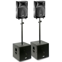 Active PA System. FBT JMaxX 110A Tops & Subline 112SA Subs. 2 x 10" Tops & 2 x 12" Subs. Telescopic Poles & Covers Included. Black FinishPower: 3200W. This package combines the highly-praised JMaxX 110A active speakers with two Subline 12" active subwoofers- delivering a whopping 3200W of audio power. Versatility is the name of the game. The JMaxX 110A is a versatile solution- catering to musicians- DJs- AV contractors- and event organisers across different settings- from corporate events and houses of worship to bars and clubs. The JMaxX 110A features an exceptional 90ø x 60ø HF horn design- ensuring superior sound projection with enhanced accuracy and dispersion of mid and high frequencies. With four finely-tuned equalization presets- this system adapts to your needs. Internally you will find lightweight 700W + 200W Class D power amplifiers with a universal switch mode power supply- providing ample power and headroom to handle even the most demanding audio with precision and without distortion. Setting up your loudspeakers has never been more straightforward. All the essential controls- including XLR inputs and outputs- volume control- EQ presets- and filters- are conveniently located on the rear panel. The JMaxX 110A offers a range of mounting options- making it versatile for both fixed installations and portable use. M10 suspension points- wall bracket flange plates- and a built-in 35mm pole mount socket give you various setup choices. No need for separate stage monitors - the JMaxX 110A's cabinet profiles come with 12ø- 40ø- and 55ø wedge angles. When paired with dedicated floor monitoring EQ presets- performers can hear themselves with crystal-clear precision. Despite its power and capabilities- the JMaxX 110A is surprisingly lightweight- weighing just 11kg. It packs a genuine 900 Watts RMS- ensuring both impressive performance and easy transport. The JM1000 system also includes two Subline 112SA subwoofers. These subwoofers are designed for maximum SPL/SIZE ratio- featuring Class D amplifiers- a switch mode power supply- and a Digital Signal Processor with presets to complement any FBT speaker. Connectivity is seamless with IN/OUT stereo connectors- enabling the use of a single subwoofer with Left and Right speakers. The Neutrik TRUE1 Power connection offers a secure- hassle-free connection without the need for a power switch. Transportation is made easy with ergonomic integrated carrying handles and sturdy tour-grade plywood cabinets.. pa system-active pa system