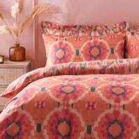 Experience the vibrant energy of our Ethnic Sunburst duvet cover set. Featuring a reversible design with stunning pink and orange hues, this extra large set adds an ethnic touch to your bedroom. Made in easy care polycotton for soft touch finish and durability. No import duty on European orders. Product Reversible Extra Long Single Duvet Cover Set Designed & Developed UK Delivery 1-2 days UK Mainland Size L220cm x W165cm No of Pillow Cases 2 x Housewife Cover fabric 50/50 Polycotton Machine Washable @ 30 Wash before use Washing Instructions Wash warm, no bleach &tumble dry low.