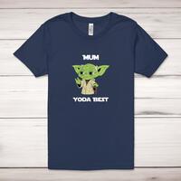 Mum Yoda Best Adult T-Shirt\nA geeky unisex adult t-shirt with "Mum Yoda Best" printed across the front of a 100% cotton* t-shirt. This geeky t-shirt is great as a gift for any occasion.\nAll of our adult t-shirts are designed and hand-printed in the UK and are manufactured from quality 100% pre-shrunk jersey cotton knit for substantial softness and comfort. When quality, durability and substance count, this is the tee everyone can agree on. Featuring a crew neck, short sleeves, twin needle sleeve and bottom hems and unisex sizing. Available in sizes Extra Small to 5XL*.\n\n*Black & White tees available in sizes XS - 5XL, all other colours available XS - 2XL\n\nSize Guide\nUnisex adult t-shirts are measured around the chest, in inches\n\nXS 32/34"\nS 34/36"\nM 38/40"\nL 42/44"\nXL 46/48"\n2XL 50/52"\n3XL 54/56"\n4XL 58/60"5XL 62/64"\n\nSee more on our clothing size guide (opens in new tab)\n\n\nPlease Note\nAll of our adult t-shirts are hand-printed to order, as a result, colours may vary between prints - images are for illustration purposes only.\n