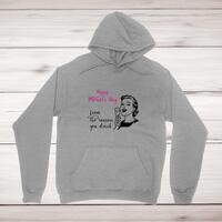 The Reason You Drink Hoodie\nA novelty hoodie with "Happy Mother's Day From The Reason You Drink" printed on the front of a unisex pullover hooded sweatshirt. Simple and straight to the point this novelty hoodie is great as a\n gift for any occasion.\nComfortable and cosy, this hoodie manages to be both warm and cool. The super soft feel and plush fabric is\n definitely something you’ll want to warm up to. All of our garments are designed and hand-printed in the UK and are\n manufactured from preshrunk fleece knit and features a double-lined hood, and colour-matched drawcord, pouch pocket\n and a tubular body that has been quarter turned to avoid a centre crease; available in sizes small to 5XL.\n\n Classic fit\n Preshrunk fleece knit\n Air jet yarn = softer feel and reduced pilling\n Double-lined hood with colour-matched drawcord\n Pouch pocket\n Twin-needle stitching at shoulder, armhole, neck, waistband and cuffs\n 1 x 1 rib with elastane\n Quarter-turned to eliminate centre crease\n Material Weight 271gsm\n 50% Cotton / 50% Polyester\n\nSize Guide\nmeasured across the chest\n\n S 34/36"\n M 38/40"\n L 42/44"\n XL 46/48"\n 2XL 50/52"\n 3XL 54/56"\n 4XL 58/60"\n 5XL 62/64"\n\nSee more on our clothing size guide (opens in new tab)\n\n Please Note\n All of our items are hand-printed to order, as a result, colours may vary between prints - images are for\n illustration purposes only.\n