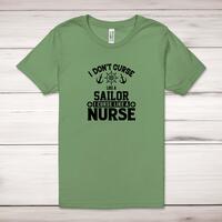 Curse Like A Nurse Adult T-Shirt\nA novelty unisex adult t-shirt with "I Don't Curse Like A Sailor, I Curse Like A Nurse" printed across the front of a 100% cotton* t-shirt. This novelty t-shirt is great as a gift for any occasion.\nAll of our adult t-shirts are designed and hand-printed in the UK and are manufactured from quality 100% pre-shrunk jersey cotton knit for substantial softness and comfort. When quality, durability and substance count, this is the tee everyone can agree on. Featuring a crew neck, short sleeves, twin needle sleeve and bottom hems and unisex sizing. Available in sizes Extra Small to 5XL*.\n\n*Black & White tees available in sizes XS - 5XL, all other colours available XS - 2XL\n\nSize Guide\nUnisex adult t-shirts are measured around the chest, in inches\n\nXS 32/34"\nS 34/36"\nM 38/40"\nL 42/44"\nXL 46/48"\n2XL 50/52"\n3XL 54/56"\n4XL 58/60"5XL 62/64"\n\nSee more on our clothing size guide (opens in new tab)\n\n\nPlease Note\nAll of our adult t-shirts are hand-printed to order, as a result, colours may vary between prints - images are for illustration purposes only.\n