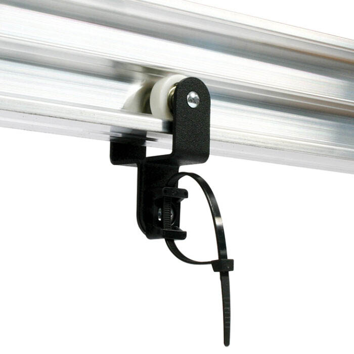 Spacer Plates for Doughty Studio Rail 80. Supplied with Rail Clamps. Designed for Spacing Only not Suspension. Available in 2 Sizes. Power Coated Black FinishDimensions T85110: 114 x 80 x 3mm T85115: 412 x 114 x 3mm Weight: 500g (T85110) & 750g (T85115). A mild steel bracket used to space two or three rails parallel at 150mm centres to match the centres of a pair of curves. Supplied with Rail Clamps. Designed for spacing only and not for suspension. Available in two sizes and comes in a powder coated black finish.. studio rail spacer plates-studio rail 80 spacer plates-doughty studio rail 80