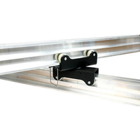 Studio Rail 4 Wheel Double Swivel Carriage. Enables Moving Rail to be Fitted Across 2 Fixed Rails. Fitted with Friction Brake. Powder Coated Black FinishSafe Working Load: 75Kg Weight: 900g. A mild steel double swivel carriage enables a moving rail to be mounted across two fixed rails. This rail can be slewed to any angle its length permits. Ideal for making rolling TV studio grids. Fitted with a friction brake and is powder coated black.. studio rail 4 wheel carriage-studio rail 60 4 wheel carriage-doughty studio rail 60