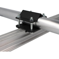 Studio Rail 80 Tube Bracket. Mount Studio Rail to a 48mm Tube. Can be used Parallel or Perpendicular. Powder Coated Black FinishSafe Working Load: 100Kg Weight: 900g. A mild steel barrel bracket supplied with rail clamps. This bracket enables a rail to be mounted either parallel or perpendicular to a 48mm tube. Available powder coated black.. studio rail tube bracket-studio rail 80 tube bracket-doughty studio rail 80