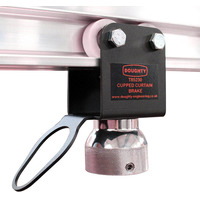 Studio Rail Four Wheel Cupped Curtain Brake. Machined Aluminium Operators Cup. Fitted with Ball Raced Runners. Powder Coated Balck FinishDimensions: 126 x 64 x 59mm Weight: 600g. A mild steel four wheel cupped curtain brake fitted with a machined aluminium operators cup and ball raced wheels. Available in powder coated black.. studio rail curtain brake-studio rail 80 curtain brake-doughty studio rail 80