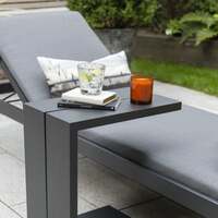 The Kettler Elba Signature Aluminium side table is a stylish and practical accessory for use with the Elba Lounger or the Elba Corner sofa. The long 48cm side table is perfect for deep sofas and is ideal for placing drinks, magazines and books. The metal frame is made from rustproof aluminium with an anthracite coating to match the Elba family. Dimensions: 48cm (L) x 28.5cm (W) x 52.5cm (H)