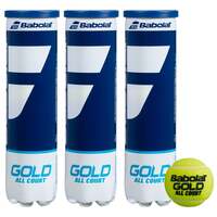 Designed for intermediate level players seeking a blend of playability and feel, the Babolat Gold All Court are high performance, pressurised tennis balls. They are approved by the International Tennis Federation (ITF) and offer high levels of comfort and versatility thanks to a rubber core and durable woven felt. The balls guarantee optimal performance on all court surfaces and come in a 1-dozen pack (3 x 4-ball tube).