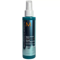 Tame frizzy hair and control static in any weather. Moroccanoil Frizz Shield Spray is specifically formulated for all hair types prone to frizz healthy, dry, curly or straight.\nIts weather-resistant properties and climate control factors weightlessly smooth hair, keeping it calm and manageable in damp or dry environments. Infused with argan oil and Vitamin E to nourish and condition.\nHow To Use:\n\nSpray generously and evenly thoughout clean, damp hair.\nComb to distribute and blow-dry in sections to activate.\nFollow with a flat iron for enhanced anti-frizz benefits.\n\n \n