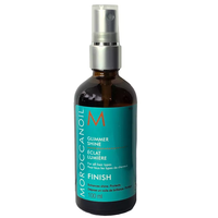 Your Hair Awards 2012 Winner – Best for Shine Styling Product!\nAn invisible veil of pure luminous shine infused with argan oil.\nMoroccanoil Glimmer Shine Finish 100ml is an effective product that provides long lasting, unparalleled-shine, while protecting hair from the damaging effects of UV light and free radicals.\nAlcohol Free.\nDIRECTIONS\n\nAfter shampooing apply a small amount of your favourite Moroccanoil styling product. Once hair is completely dry and styled, spray a light even mist of Moroccanoil Glimmer Shine Spray about 10 inches away from hair. Altervaitvely, you can spray onto hands and work through hair.\n\nTips from the pros: Dusting your hair brush with Moroccanoil Glimmer Shine Finish 100ml will help prevent static and frizz. Repeated applications will enhance the effectiveness of Moroccanoil Glimmer Shine Spray, especially for thick or coarse hair. Use daily for UV protection.\nINGREDIENTS\nCyclomethicone, Dimethicone, Argania Spinosa (Argan) Kernel Oil, Parfum/Fragrance, Triticum Vulgare (Wheat) Germ Oil, Panthenol, Ci 26100 (D&C Red No. 17), Ci 47000 (D&C Yellow No. 11)\n