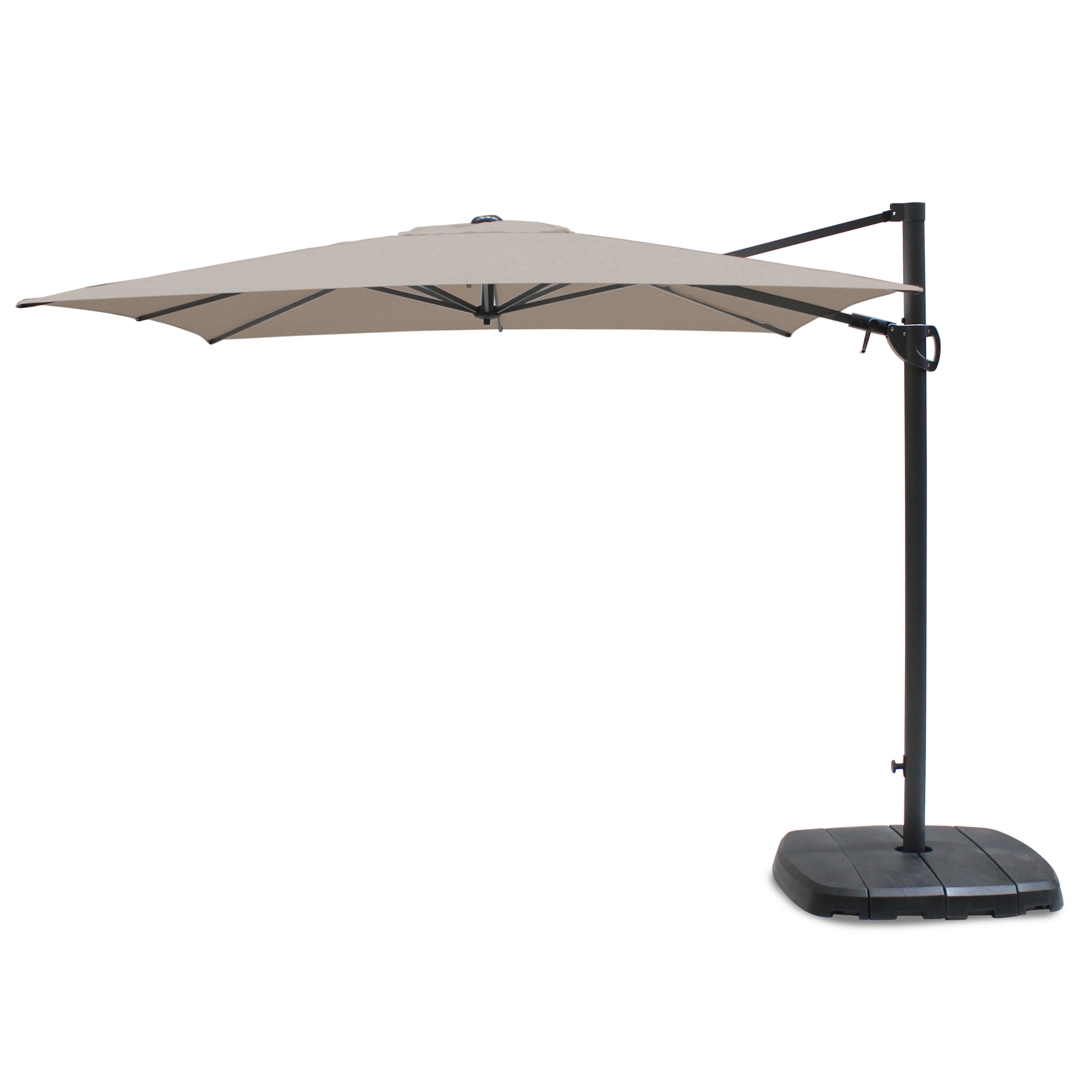 This Leisuregrow 3m Aluminium Crank and Tilt Parasol with 38mm diameter pole is perfect for a variety of Leisuregrow furniture sets. With Graphite pole and cream canopy, its crank and tilt technology makes this parasol easy to assemble and use; covering a variety of angles. Use of a parasol base is always recommended. 38mm aluminium pole Powder coated steel ribs Crank and tilt function All-weather polyester canopy Assembled Dimensions: H: 240cm x W: 300cm x D:300cm