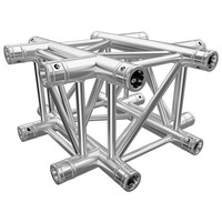 Global Truss F34 PL Series. 4 Way Cross. 50mm Diameter Tube. 3mm Wall Thickness. Prolyte H30 Compatible. Supplied with 2 Fixing KitsSquare Size: 290 x 290mm Tube Diameter: 50mm Wall Thickness: 3mm Weight: 11.5Kg. The Global Truss F34 PL 4 Way Cross Piece is a truss component designed for use in event production and stage setups. It features a convenient assembly system that allows for quick and secure joining of truss segments without the need for additional tools. Each cross piece is supplied with 12 conical connectors- along with 24 pins and 24 R clips. These connectors and clips are designed to simplify the setup process- particularly in time-sensitive situations. They provide easy and secure connections between truss segments- ensuring stability and safety during use. The corner of the F34 PL 4 Way Cross Piece is also Prolyte H30 compatible. This means that it is designed to be compatible with truss components from the Prolyte H30 series- allowing for flexibility and interchangeability between different truss systems. Overall- the Global Truss F34 PL 4 Way Cross Piece offers a convenient and efficient solution for assembling truss structures- making it suitable for various event production and stage applications.. truss-trussing-trussing corner-square truss-prolyte truss-global truss