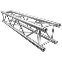 Strong Aluminium Truss. 50mm Tube. Complete With CouplersDimensions: 290 x 290mm Tube Diameter: 50mm Wall Thickness: 2mm. The Global Truss F34 is a type of truss system that offers a high level of quality and durability. It is specifically designed with TUV Certification- which ensures that the aluminium welding meets rigorous safety standards. The truss has a wall thickness of 2mm- which contributes to its excellent load handling capacity. The F34 truss system is versatile and adaptable to various applications. It comes in a full range of lengths- allowing for flexibility in creating different configurations. Additionally- there are options for baseplates- corners- connectors- and couplers- which further enhance its versatility. Due to its sturdy construction and reliability- the F34 truss system is well-suited for fixed installations- such as in theatres- event venues- or exhibition halls. It can also be used for shop fittings- providing a robust framework for displays and signage. Furthermore- its durability makes it suitable for rental applications- where it can withstand frequent assembly and disassembly. The F34 truss is 290mm square with 50mm diameter poles and is supplied with 4 conicals- 8 pins and 8 R Clips. These accessories work together to ensure a secure and stable connection between truss segments- allowing you to build a reliable and sturdy structure using the F34 truss system. Overall- the Global Truss F34 0.21m truss offers a combination of strength- certification- and accessory options- making it an excellent choice for a wide range of applications- including fixed installations- shop fittings- and rental needs.. truss-trussing-trussing straight lengths-quatro truss-square truss-global truss