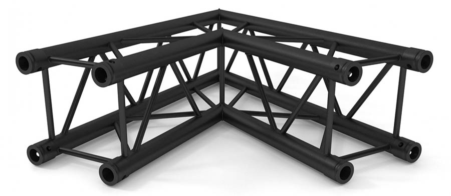 Strong Aluminium Truss. 50mm Tube. Complete With CouplersDimensions: 290 x 290mm Tube Diameter: 50mm Wall Thickness: 2mm. The Global Truss F34 is a type of truss system that offers a high level of quality and durability. It is specifically designed with TUV Certification- which ensures that the aluminium welding meets rigorous safety standards. The truss has a wall thickness of 2mm- which contributes to its excellent load handling capacity. The F34 truss system is versatile and adaptable to various applications. It comes in a full range of lengths- allowing for flexibility in creating different configurations. Additionally- there are options for baseplates- corners- connectors- and couplers- which further enhance its versatility. Due to its sturdy construction and reliability- the F34 truss system is well-suited for fixed installations- such as in theatres- event venues- or exhibition halls. It can also be used for shop fittings- providing a robust framework for displays and signage. Furthermore- its durability makes it suitable for rental applications- where it can withstand frequent assembly and disassembly. The F34 truss is 290mm square with 50mm diameter poles and is supplied with 4 conicals- 8 pins and 8 R Clips. These accessories work together to ensure a secure and stable connection between truss segments- allowing you to build a reliable and sturdy structure using the F34 truss system. Overall- the Global Truss F34 0.21m truss offers a combination of strength- certification- and accessory options- making it an excellent choice for a wide range of applications- including fixed installations- shop fittings- and rental needs.. truss-trussing-trussing straight lengths-quatro truss-square truss-global truss