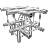 Global Truss F34 3 Way T + 1 Down. 50mm Tube. Supplied with 2 Fixing KitsSquare Size: 290 x 290mm Tube Diameter: 50mm Wall Thickness: 2mm Weight: 10.4Kg. The term "F34 Standard 4 Way 90 Degree Corner" typically refers to a specific component used in the construction of truss systems. Truss systems are structural frameworks made of interconnected bars or tubes used to support various types of structures- such as stages- lighting rigs- and exhibition booths. In this context- "F34" refers to a specific type of truss- which is often made of aluminium and is known for its strength and versatility. The "F34" designation signifies the specific size and dimensions of the truss members. A "4 Way 90 Degree Corner" indicates a corner joint that connects four truss members at a 90-degree angle. This type of corner is commonly used in truss systems to create rectangular or square structures- such as stages- trade show booths- or temporary roof systems. The F34 Standard 4 Way 90 Degree Corner is designed to securely join the truss members together using the 8 conicals and 16 pins/r clips included- providing stability and rigidity to the overall structure. It typically has connection points on all four sides- allowing for the attachment of additional truss segments or accessories. It's worth noting that the specific dimensions and design of the F34 Standard 4 Way 90 Degree Corner may vary depending on the manufacturer or supplier. Therefore- if you're looking to purchase or work with this component- it's essential to consult the specifications provided by the specific manufacturer or supplier to ensure compatibility with your truss system.. truss-trussing-trussing corner-quatro truss-square truss-global truss