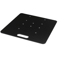 Heavy Duty Truss Base Plate. Compatible with Global Truss F32-F34- F33PL & F34PL Trussing. Requires GTF34HC Conicals for Stadard Truss or GTF34PLHC Conicals for PL Truss. Half Conicals Sold SeparatelyDimensions: 600 x 600 x 6mm Weight: 21.8Kg. The UBP600 is a base plate measuring 600 x 600mm and is designed for use with F31-F34 truss or Curtain Call pipe and drape systems. It does not include conicals or spigots. The base plate is manufactured in the UK using high-grade- laser-cut steel plate and features a semi-gloss black powder coat finish. The universal hole patterns on the base plate ensure full compatibility with Global Truss and most other brands of 290mm truss. This means that you can easily connect and combine truss sections from different manufacturers without any compatibility issues. Overall- the UBP600 base plate provides a sturdy and reliable foundation for building truss structures or pipe and drape systems. Its high-quality construction and universal compatibility make it a versatile option for various event setups.. truss-trussing-trussing base plate-quatro truss-square truss-global truss