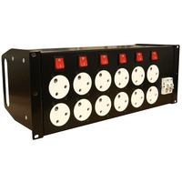 Switching Pack For LED Lighting. Replace Old Dimmer Packs. 12 15amp Sockets. Switched in Pairs. 2 x 16amp C RCBO. 20mm Gland Input. A useful convertor for installers and electricians. Use this unit to convert conventional dimmers that dim halogen lights- to a unit that supply's a constant mains supply for LED lights. This unit can replace Zero88 Beta packs that have been wall mounted or rack mounted and use 15 amp patch flying leads- this reduces time and money in having to replace old lighting bars and patch bays. This unit has twelve 15 amp sockets split over two 16amp C type RCBO breakers. Each pair of sockets can be switched on and off independently. This is a handy distribution unit to easily convert old dimmer packs to a LED suitable unit using the existing 32 amp supply. Different configurations and breakers can be provided on request.. LED switch pack-LED dimmer converter-dimmer replacement