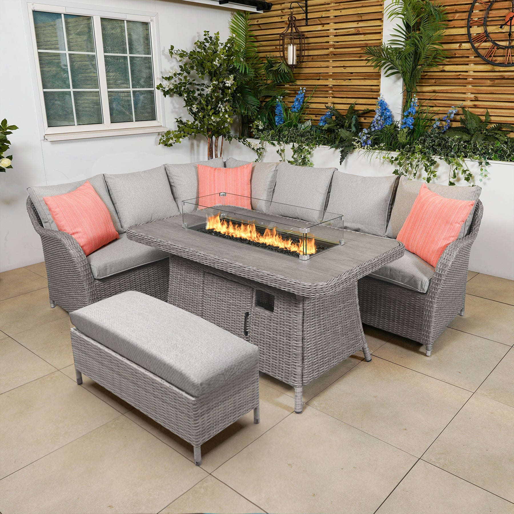 | Bracken Outdoors Panama Warm Grey Aluminium Rectangular Corner Sofa Set with Fire Pit Table | ¤1,799.00 | ![]() |
