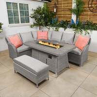 Enjoying a lot of time out in the garden for some late-night drinks will be easier with the Monte Carlo Stone Modular Sofa Set with Fire Pit Table by LG Outdoor. The outdoor corner sofa and stool feature a pebble-coloured weave and Ash Grey garden cushions. This allows you to leave them outside in any weather conditions. They also have a rust-free aluminium frame that is powder coated, so they can put outside all year round. In addition to the stunning design of this set that is sure to become a central focus in your garden when entertaining guests or experiencing al fresco dining, this Monte Carlo set has a reclining corner section which gives you an extra bit of luxury! The table's wood-effect ceramic glass top, together with the big gas fire pit and glass surround in the middle, are its standout features. Its exquisite design will boost your outdoor space. You may extend your social events outside long into the night thanks to the fire pit's added warmth on those chilly summer days. Please Note: When not in use, the cushions should be kept inside in a dry location. What's Included Modular Left & Right Sofa with Cushions Reclining Corner Sofa, Middle Sofa with Cushions Double Footstool Rectangular Gas Firepit Table Features Stone colourway Seasonproof seat and back cushions Durable weave on an aluminium frame Reclining corner sofa Ceramic wood-effect glass top Simple assembly 3 year manufacturer's warranty Dimensions Sofa: 81cm (H) x 244cm (W) x 76cm (D) Stool: 35cm (H) x 80cm (W) x 42cm (D) Table: 68cm (H) x 120cm (W) x 120cm (D)