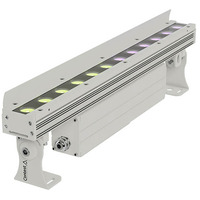 12 x 4W or 24 x 4W COB LED Versions. RGBL LEDs. LED Split Over 2 Zones. Symmetrical Lenses 12ø Aperture. DMX/Power Connections via Hybrid In & Out Cables with IP67 Plugs. External VRDM Control Box for RDM Parameterization. Compatible with RDM Consoles on Certain Parameters. DMX Control Protocol on 2 to 20 Channels Depending on the Selected Mode. Selectable Refresh Rate from 900Hz to 3600Hz. Convection Cooled. IP66 Protection Dust & Splash Proof from all DirectionsVBAR50RGBL Power Supply: 100-240V- 50/60Hz Power Consumption: 52W LED: 12 x 4W RGBL Beam Angle: 12 Degrees IP Rating: IP66 DMX Channels: 2- 4- 5- 6- 8- 10- 12- 16- 18 or 20 Dimensions: 484 x 53 x 117mm Weight: 3.2Kg VBAR100RGBL Power Supply: 100-240V- 50/60Hz Power Consumption: 102W LED: 24 x 4W Beam Angle: 12 Degrees IP Rating: IP66 DMX Channels: 2- 4- 5- 6- 8- 10- 12- 16- 18 or 20 Dimensions: 997 x 53 x 117mm Weight: 5.7Kg. This outdoor architectural LED batten is perfect for demanding indoor or outdoor lighting applications. Its powerful COB LEDs deliver exceptional brightness with 12 x 4W or 24 x 4W output versions- with LEDs split into 2 zones. The 4 in 1 RGBL LED enable a selection of colour outputs to achieve the desired aesthetic effect when coupled with the symmetrical 12 degree lenses. The batten utilizes hybrid cables with IP67 rated plugs for secure and reliable signal and power transmission. DMX control via 2 to 20 channels depending on the chosen mode for integration with existing DMX lighting systems. A VRDM control box provides external access for RDM parameterization- allowing for remote configuration of various lighting properties. Selectable refresh rate ranging from 900Hz to 3600Hz ensures flicker free performance- ideal for video applications. The convection cooled cast aluminium housing provides excellent heat dissipation and long-lasting durability. This battens combination of rugged construction- powerful output- precise optics- and advanced control options make it a compelling choice for architects- lighting designers- and professionals seeking a high-performance solution for outdoor illumination projects.. led batten-outdoor led batten-architectural batten
