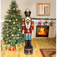 This Blue, Red and Black Pre-Lit LED Christmas Nutcracker Soldier by The Christmas Centre is based on the traditional German wooden Nutcrackers. These are made of sturdy polyresin and is suitable for both indoor & outdoor use. It will look fantastic positioned next to your fireplace or standing guard at your front door. Embedded with warm white LED lights in his red jacket and black/gold hat, this large nutcracker is a great addition to any Christmas display. Three AA batteries are needed to light him up (not included). An integrated timer that starts to run as soon as the nutcracker soldier turns on is one of its key features. It will turn off for 18 hours after 6 hours of use. With his amazing top hat and red shoulder pads, this tall nutcracker will stand proud wherever you decide to put him. Features Life size nutcracker (142.5cm tall) Traditional design Suitable for indoor and outdoor use Static warm white LED lights Built-in timer (6 hours on, 18 hours off) 3x AA batteries required - NOT INCLUDED Specifications Colour(s): Blue, red, and black Material(s): Polyresin, fibre glass No. of LED Lights: 14 Dimensions: 38.5cm (L) x 32cm (W) x 142.5cm (H) Weight (kg): 9