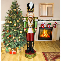 Made of durable polyresin, this Red, White, and Green Pre-Lit LED Christmas Nutcracker Soldier by The Christmas Centre is based on the traditional German wooden Nutcrackers. It can be used both indoors and outdoors. It will look amazing guarding your front door or next to your fireplace. An amazing complement to any festive display, this majestic giant Christmas nutcracker has warm white LED lights in its jacket and hat. Three AA batteries are needed to light him up (not included). It also has an embedded timer that will activate automatically as soon as the nutcracker soldier is turned on. It will light up for 6 hours before shutting down for 18 hours. The amazing top hat and gold shoulder pads make this tall nutcracker stand proud wherever you decide to place him. Features Lifelike nutcracker (167.5cm tall) Suitable for indoor and outdoor use Traditional design Static warm white LED lights Built-in timer (6 hours on, 18 hours off) 3x AA batteries required - NOT INCLUDED Specifications Colour(s): Red, white, and green Material(s): Polyresin and fibre glass No. of LED Lights: 17 Dimensions: 45cm (L) x 37.5cm (W) x 167.5cm (H) Weight (kg): 17