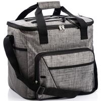 Meteor Frosty Thermal Bag - Gray/Black The Meteor thermal bag is a great solution for a picnic outside the city and a relaxing day at the beach. Heat-insulating padding effectively maintains low temperature for many hours, and its smooth texture is easy to clean. Side mesh pockets and front pocket. A long braided adjustable shoulder strap and comfortable handles with a connecting strap. Simple cut with a two-way zipper. Elastic with a stopper sewn in at the top. Technical data: \n\n Material: Polyester, PE foam \n\n Dimensions: 35 x 33 x 24 cm \n\n Capacity: approx. 27 l