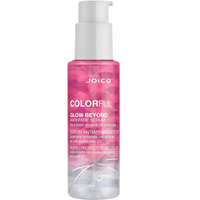 Joico Colorful Glow Beyond Anti-Fade Serum 63ml provides up to 8 weeks of colour vibrancy, boosting shine, manageability, and strength after every use.\nThis anti-fade serum reduces frizz for smoother hair in just one use, while preserving the long-term vibrancy and intensity of gorgeous hair colour. It helps prevent hair colour from fading off-tone when exposed to UV or sunlight, and guards against the hair-dulling effects of pollution.\nThis unique serum has been formulated with Joico’s SmartRelease Technology, a liposome delivery system which continuously releases Rosehip Oil, Arginine, and Keratin to help repair, strengthen, and protect hair from the damaging effects of daily styling.\nCamelia Oil, packed with essential Omega 9 fatty acids and antioxidants, helps to seal in moisture and restore luminous shine to hair, whilst Pomegranate Fruit Extract, rich in tannins and fade-fighting super antioxidants, helps Joico Colourful protect the longevity of hair colour. Free from SLS/SLES sulphates. Cruelty-free.\nDirections of use:\n\nApply 1-2 pumps to damp or dry hair.\nStyle as usual.\n\n