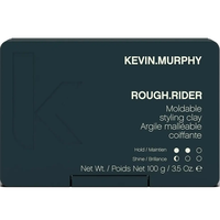 Why Kevin Murphy Rough Rider Moldable Styling Clay is Cult\nTaking inspiration from skin care, KEVIN.MURPHY hair care is designed to deliver performance, strength and longevity to your locks – weightlessly.\nA master of styling, Kevin Murphy understands the transformative power of hair better than most – his work has graced many of the world’s most magnificent manes and the covers of countless magazines. Bringing this expertise to your bathroom, his ROUGH.RIDER will add just-back-from-the-salon style — keeping your strands in place via a strong-hold clay formula that even hydrates and strengthens hair.\nWhen the going gets rough, rely on the ROUGH.RIDER strong-hold styling clay by KEVIN.MURPHY to slick things into place.\nSet to see you through anything (windy days included), this formula holds hair in place while lending soft definition and a matte finish. Whether you use it for an effortlessly undone and ‘roughed-up’ look or just to seal ends while adding hydration and boosting strength, it can be used on all hair types and a variety of lengths. Patchouli oil, soya bean extracts and golden bamboo nourish hair and feed it with antioxidants without leaving it feeling greasy, and the formula is totally vegan friendly.\nHow To Use\n\nRub a small amount between palms, then distribute evenly throughout damp or dry hair.\n\n