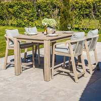 Add a touch of elegance and comfort to your outdoor space with the Charlton Acacia and Rope Rectangular 4 Seat High Bar Garden Furniture Set . Perfect for outdoor entertaining, this stylish set combines sleek design with durability, making it an ideal choice for gardens, patios, or balconies. Whether you're hosting a lively gathering or enjoying a quiet evening outdoors, this bar set provides the perfect setting for relaxed conversation and drinks. Crafted from premium acacia hardwood, the bar set offers natural beauty and lasting strength, while the weather-resistant rope detailing adds a modern, sophisticated twist. The set includes four bar-height stools and a matching bar table, designed for both comfort and style. The stools feature supportive rope backs for added comfort, allowing you to sit back and enjoy your surroundings in ultimate relaxation. The spacious bar table provides ample room for drinks, snacks, or even a meal, making it perfect for casual dining or socializing. Whether it's a weekend BBQ or a sunset cocktail hour, this bar set is sure to impress your guests and elevate your outdoor experience. This acacia wood and rope garden furniture set is the perfect addition to any outdoor space, offering the perfect blend of style, comfort, and durability. Make your garden the ultimate destination for outdoor entertaining today! The Bracken Outdoors 1 Litre Teak Shield is an excellent option for maintaining the longevity of this wooden outdoor bar set. Applying it from the start will definitely give the wood a solid foundation of protection while still allowing it to breathe, which is key for wood to avoid cracking or warping over time. It is important that you avoid the rope areas as rope tends to absorb treatments, so it is good to keep it free from the teak shield to avoid any unwanted changes in texture or appearance. Set Features 4x Smoky white Acacia hardwood and rope bar chairs/stools with grey cushions 1x Smoky white Acacia hard wood 180cm x 100cm rectangular high dining/bar table Showerproof, machine washable cushions Durable Acacia Wood Frame : Naturally resistant to the elements, ensuring long-lasting beauty and strength Elegant Rope Design : Weather-resistant rope detailing adds a contemporary flair while providing comfort and support Bar-Height Stools : Four stools with supportive, comfortable rope backs ideal for socializing or dining Spacious Bar Table : A sleek and practical surface perfect for drinks, snacks, or casual dining Easy to Maintain : Built with materials designed to withstand the elements, requiring minimal upkeep Warranty: 3 years Set Dimensions Recommended Footprint: 400cm x 300cm Chair(s): 68cm (L) x 58cm (D) x 97cm (H) Table: 180cm (L) x 100cm (D) x 95cm (H)