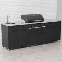 Transform your backyard into a luxurious outdoor cooking space with the Draco Grills Titan 4 Burner Black Outdoor Kitchen Gas Barbecue with Side Burner Cabinet . This sleek, black powder-coated and stainless steel 4-burner gas barbecue and side burner cabinet with stainless steel top combo, combines modern design with premium performance, making it the ultimate addition to any patio or outdoor gathering area. The barbecue has four high-performance burners, you can cook a variety of meals at once, ensuring your guests are always satisfied. The sturdy cabinet offers convenient storage for your grilling tools, patio gas bottle (5kg patio gas), and accessories, keeping your outdoor space organized and clutter-free. The side burner cabinet features a sleek black powder-coated finish, and is the perfect addition to your outdoor kitchen barbecue, offering both style and functionality. Equipped with a stainless steel top and stainless steel burner, it delivers durability and performance for all your cooking needs, whether you're heating sauces, grilling sides, or boiling water. The backlit control knobs add a touch of elegance while providing practical functionality, making it easy to adjust the temperature even in low-light conditions. Whether you're searing steaks, grilling vegetables, or cooking burgers, the Titan Outdoor Kitchen ensures your culinary creations are cooked to perfection. Elevate your outdoor entertaining experience with the Draco Grills Titan Barbecue and Side Burner. S tylish and powerful, built for quality, convenience, and performance. Perfect for chefs of all levels, it's time to take your grilling game to the next level! It's ideal for catering medium to large-sized gatherings because it can be combined with many modular components to construct your own outdoor kitchen. Options include cabinets, sinks, fridges; all are very well-made and affordably priced! Titan 4 Burner BBQ Features and Specifications Attractive matt black finish Heat retaining cast iron cooking grills Back-lit illuminated control knobs Manual Piezo ignition for effortless lighting High grade stainless steel tube burners offering consistent flame control providing heat efficient distribution Stainless steel flame tamers Easy to clean fat collection tray Double-door cabinet underneath the BBQ with space designed for storing 5kg patio gas bottles Easy-glide wheels with brake Temperature gauge Hose and a clip-on propane regulator supplied CE certified 3 year limited warranty (warranty on cabinet is 1 year) Cooking Area: 64cm x 44cm (cm²) Output per Burner: 12,000 BTU (3.55kW) Total Heat Output: 48,000 BTU (14.2kW) Easy to assemble with full assembly instructions provided Dimensions: 70cm (W) x 119cm (H) - lid down & 147cm (H - lid up) x 54cm (D) Titan Sink and Tap Unit Features & Specifications Stainless steel worktop Tap runs on hot & cold water Stainless steel tap Sink has separate waste line Easy-glide wheels with brake 1 year limited warranty CE certified Easy to assemble with full assembly instructions provided Dimensions: 90cm (H)x 78cm (W) x 54cm (D) Titan Double Cabinet Features & Specifications Stainless steel worktop Easy glide wheels with brake 1 year limited warranty CE certified Easy to assemble with full assembly instructions provided Dimensions: 90cm (H) x 78cm (W) x 54cm (D) *Please be aware that outdoor kitchens installed in coastal areas are susceptible to rust and corrosion due to the high levels of salt in the air. The manufacturer or installer cannot be held liable for damage caused by environmental factors, including saltwater corrosion. It is the responsibility of the owner to take appropriate precautions to maintain the integrity of the outdoor kitchen.* . Draco Grills Titan 4 Burner Black Outdoor Kitchen Gas Barbecue with Double Cupboard and Sink, Mid June 2025