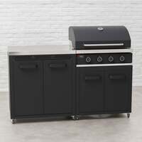 Transform your backyard into a luxurious outdoor cooking space with the Draco Grills Titan 4 Burner Black Outdoor Kitchen Gas Barbecue with Side Burner Cabinet . This sleek, black powder-coated and stainless steel 4-burner gas barbecue and side burner cabinet with stainless steel top combo, combines modern design with premium performance, making it the ultimate addition to any patio or outdoor gathering area. The barbecue has four high-performance burners, you can cook a variety of meals at once, ensuring your guests are always satisfied. The sturdy cabinet offers convenient storage for your grilling tools, patio gas bottle (5kg patio gas), and accessories, keeping your outdoor space organized and clutter-free. The side burner cabinet features a sleek black powder-coated finish, and is the perfect addition to your outdoor kitchen barbecue, offering both style and functionality. Equipped with a stainless steel top and stainless steel burner, it delivers durability and performance for all your cooking needs, whether you're heating sauces, grilling sides, or boiling water. The backlit control knobs add a touch of elegance while providing practical functionality, making it easy to adjust the temperature even in low-light conditions. Whether you're searing steaks, grilling vegetables, or cooking burgers, the Titan Outdoor Kitchen ensures your culinary creations are cooked to perfection. Elevate your outdoor entertaining experience with the Draco Grills Titan Barbecue and Side Burner. S tylish and powerful, built for quality, convenience, and performance. Perfect for chefs of all levels, it's time to take your grilling game to the next level! It's ideal for catering medium to large-sized gatherings because it can be combined with many modular components to construct your own outdoor kitchen. Options include cabinets, sinks, fridges; all are very well-made and affordably priced! Titan 4 Burner BBQ Features and Specifications Attractive matt black finish Heat retaining cast iron cooking grills Back-lit illuminated control knobs Manual Piezo ignition for effortless lighting High grade stainless steel tube burners offering consistent flame control providing heat efficient distribution Stainless steel flame tamers Easy to clean fat collection tray Double-door cabinet underneath the BBQ with space designed for storing 5kg patio gas bottles Easy-glide wheels with brake Temperature gauge Hose and a clip-on propane regulator supplied CE certified 3 year limited warranty (warranty on cabinet is 1 year) Cooking Area: 64cm x 44cm (cm²) Output per Burner: 12,000 BTU (3.55kW) Total Heat Output: 48,000 BTU (14.2kW) Easy to assemble with full assembly instructions provided Dimensions: 70cm (W) x 119cm (H - lid down) & 147cm (H - lid up) x 54cm (D) Titan Double Cabinet Features & Specifications Stainless steel worktop Easy glide wheels with brake 1 year limited warranty CE certified Easy to assemble with full assembly instructions provided Dimensions: 90cm (H) x 78cm (W) x 54cm (D) *Please be aware that outdoor kitchens installed in coastal areas are susceptible to rust and corrosion due to the high levels of salt in the air. The manufacturer or installer cannot be held liable for damage caused by environmental factors, including saltwater corrosion. It is the responsibility of the owner to take appropriate precautions to maintain the integrity of the outdoor kitchen.* . Draco Grills Titan 4 Burner Black Outdoor Kitchen Gas Barbecue with Double Cupboard Cabinet, Mid June 2025