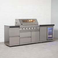 The stylish Draco Grills 6 Burner BBQ Modular Outdoor Kitchen with Double Drawers and Single Fridge will look fantastic in your garden. The grill on the Z640 6 Burner Gas BBQ features a double skinned stainless steel hood, stainless steel tubular burners and a solid galvanised frame. It is a stainless steel gas barbecue that's perfect for those seeking simple sophistication in the garden - a grill which is great to look at and even better to cook on! It can be converted to Natural Gas using a Draco Grills Outdoor Kitchen Natural Gas Conversion Kit (DRA9941). Combined with the Draco Grills Double Drawer Unit that provides extra storage space and the Draco Grills Single Fridge Unit to cool your drinks, giving you the perfect Outdoor Kitchen. For optimum cooling, please keep the fridge out of direct sunlight. Please Note: The granite side panels are an added extra for this kit and can be selected via the drop-down menu, without these the kit will have stainless steel sides! A BBQ griddle is also not included with this package, but is available as an optional extra. 6 Burner BBQ Features & Specifications Stainless steel hood (double skinned) 430 commercial grade stainless steel Six stainless steel tubular burners Stainless steel fascia panel Infra-red back burner LED Lights Fold-down side shelves Stainless steel cooking grills Double drawer roller system 1 cupboard and 2 drawers underneath the BBQ Hidden locking caster wheels Can be converted to Natural Gas using a conversion kit Cooking Area: 43cm x 97cm Total Heat Output: 90,000 BTU (12,500 BTU per main burner, 15,000 BTU for rear burner, so total is 12,500 x 6 + 15,000 = 90,000 BTU) 5 year limited warranty Dimensions: 119cm (H) x 110cm (W - exc. shelves) & 191cm (W - inc. shelves) x 57.5cm (D - exc. hood and controls which protrude) & 68cm (D - when hood is open) Single Fridge Unit Features & Specifications Temperature Range: 2 - 10 °C 60L capacity fridge Temperature control using a digital thermostat 3 adjustable shelves Hidden locking castor wheels with built in feet for levelling Stainless steel handle Granite worktop IPX4 water resistant Blue interior LED lighting Fridge is lockable Energy Efficiency Ratin G 37Db (when compressor is running) 5 year limited warranty on unit 1 year limited warranty on fridge CE certified Total Work Surface Area: 70cm (D) x 96cm (W) - 0.672SqM Dimensions: 90cm (H) x 96cm (W) x 57.6cm (D) Double Drawer Unit Features & Specifications 430 commercial grade stainless steel Granite work surface Warranty: 2 years (cabinet) and 1 year (granite top) Dimensions: 90cm (H) x 48.5cm (W) x 57.5cm (D) Overall Kitchen Dimensions Height: 119cm Width: 254.5cm Depth: 57.5cm (exc. hood and controls which protrude) If this Outdoor BBQ Kitchen does not fit your needs, don't forget to check out our other straight run and L shape options. . Draco Grills 6 Burner BBQ Modular Outdoor Kitchen with Double Drawers and Single Fridge Unit, Mid June 2025 / Without Granite Side Panels